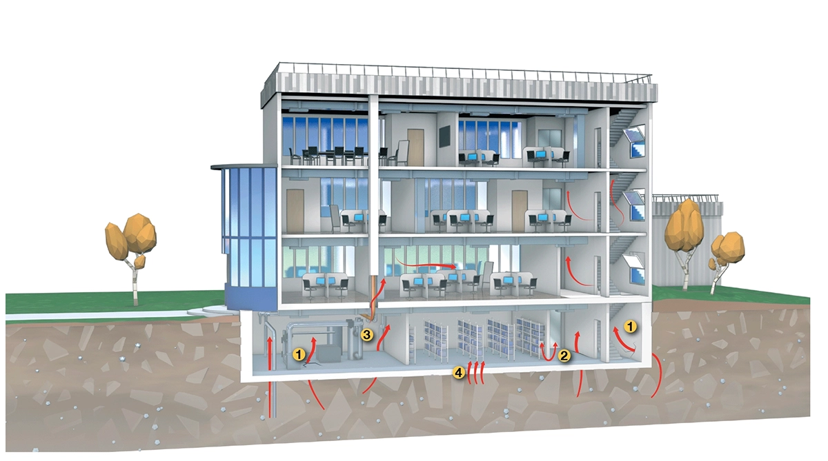 À noter qu’un système de ventilation simple flux par extraction ou double flux dont le dimensionnement et le réglage entrainent une mise en dépression des locaux peut accentuer la pénétration du radon par aspiration via les voies d’entrée.